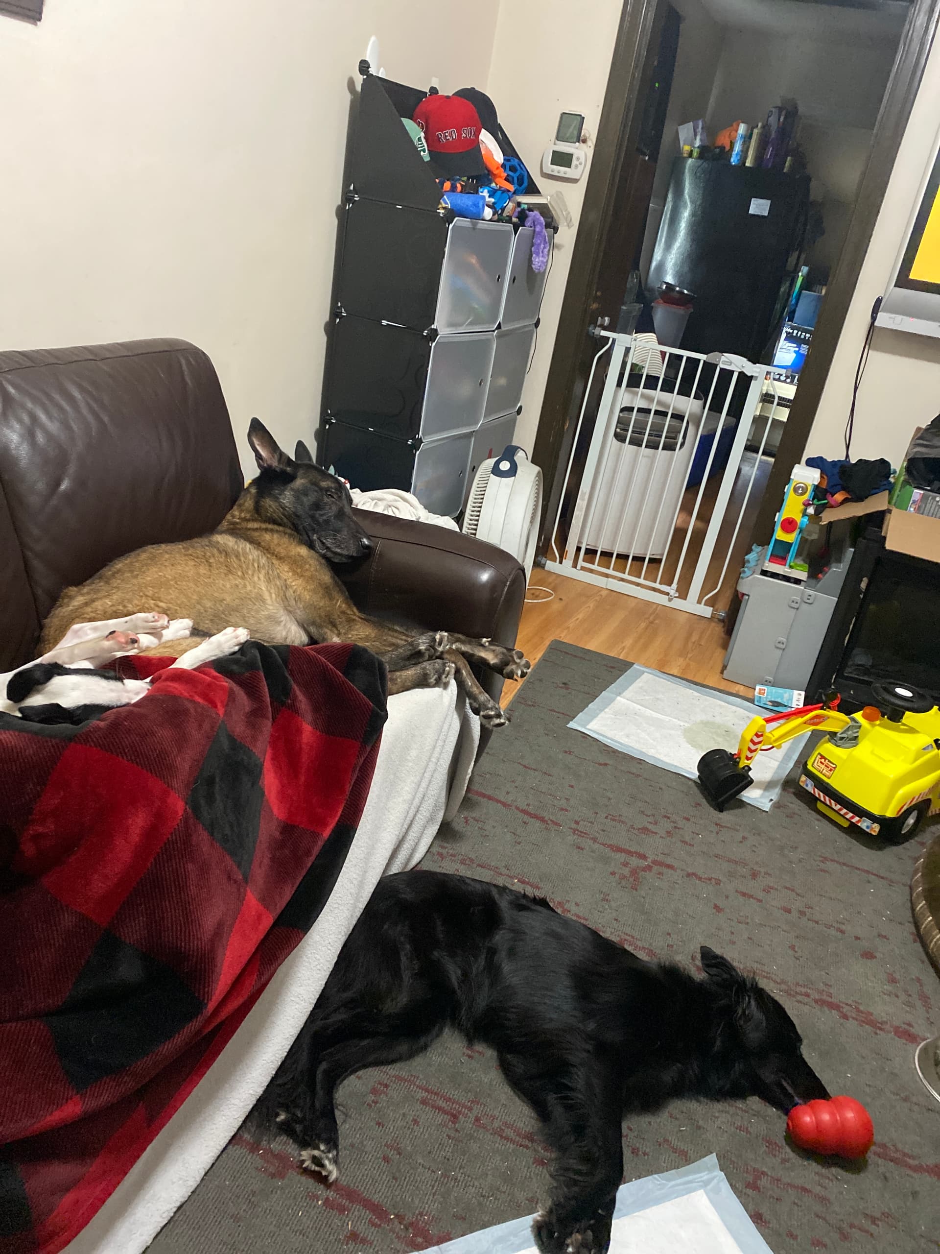 All the dogs are sound asleep and Ayden lol.