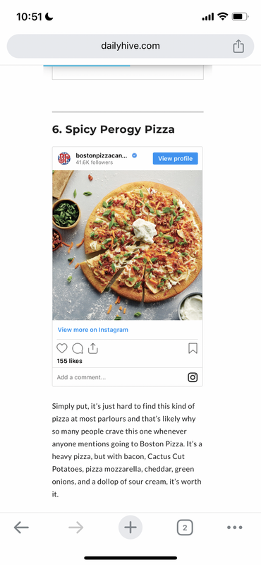 I will get the spicy Perogy pizza. It’s absolutely amazing. One of their most popular items there.