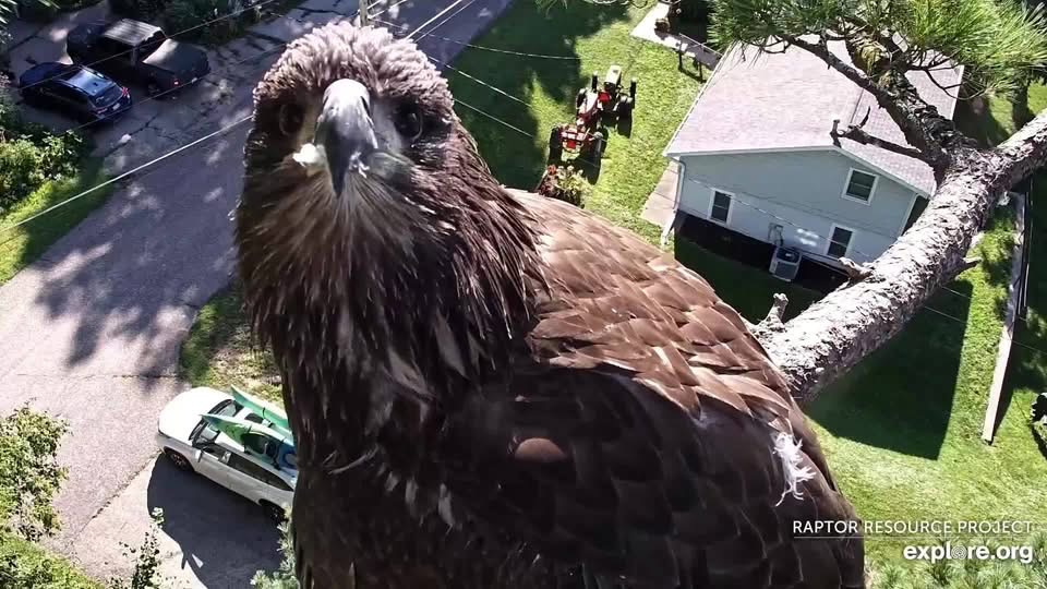 July 27, 2025: Enjoy that sweet face now! As of this post, TE3 is still spending most of her time within 1-1.5 miles of the nest and her nights at home. Based on our transmitters studies and other research, that will change at about 30 days on the wing.