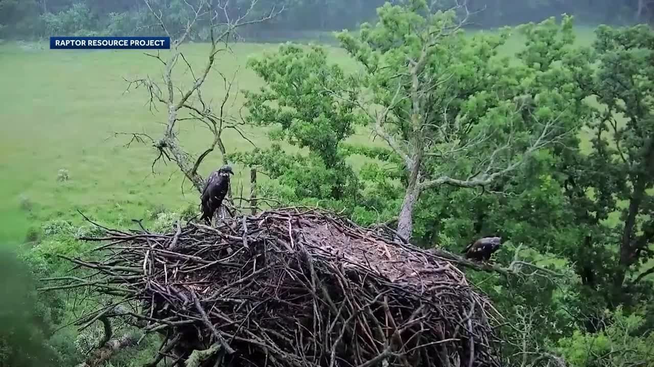 As many know, the Decorah North nest toppled in a rain storm earlier this year. Here’s the video. Notice the two juvies close by.